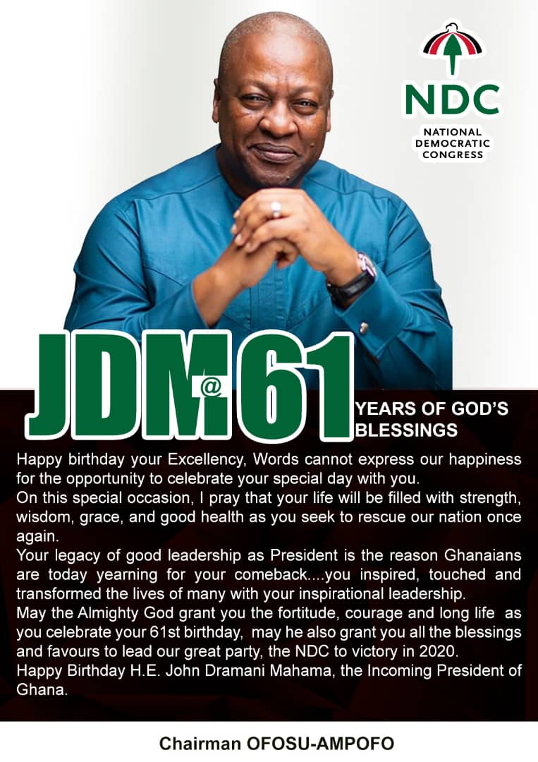 Your legacy of Good Leadership As President Is The Reason Ghanaians Are Today Yearning For Your Comeback – Chairman Samuel Ofosu Ampofo Celebrates JM