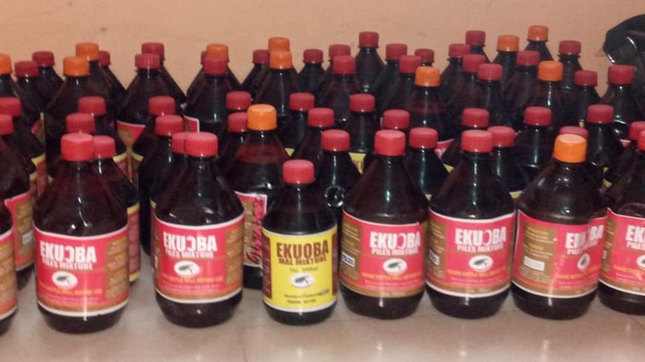 The drug, Ekuɔba piles mixture, is prescribed to heal stomach disorders, gornorrhea and candidiasis. The drug which expired February 28, 2019 has been relabelled with a new date as 10 April, 2022.