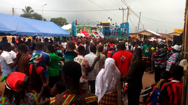 As people thought Abuakwa South constituency, especially Kyebi, is a no go area for the opposition National Democratic Congress, NDC, for the fact that Kyebi is the home of the president and undoubtedly a stronghold of the governing New Patriotic Party, the National Chairman of the NDC, Hon. Dr Samuel Ofosu Ampofo invades the territory today November 28 2020, as he receives a rousing welcome at Kyebi.