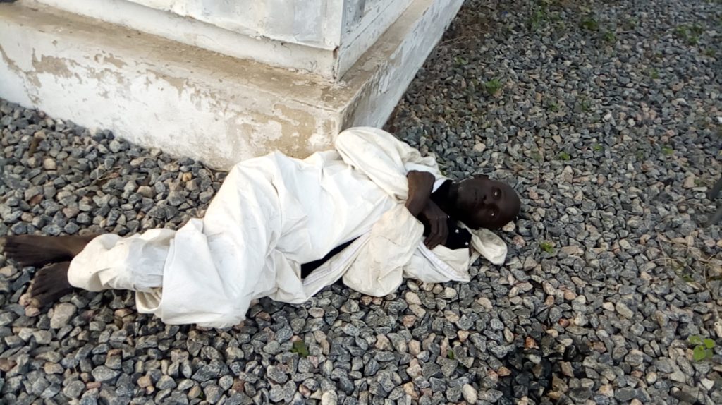 As to what have caused his death, it’s yet to he known. But he is seen lying down in a white linen but no blood spilled on the ground neither is there any cut on the body.