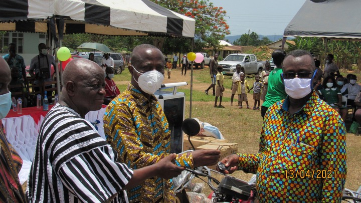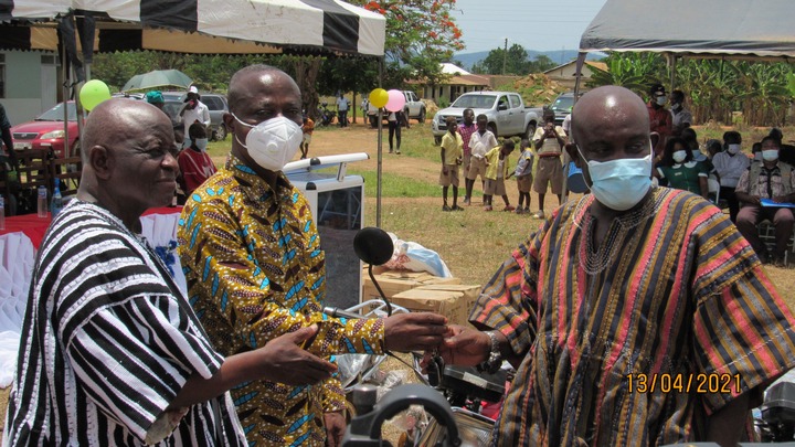 In a ceremony to hand over the facility at Akyem Saamang where the facility is built, he added two motorbikes per GES requests and asked the District Director of Education, Mr Matthew Adu Bobi per his own discretion with respect to who needs it most.