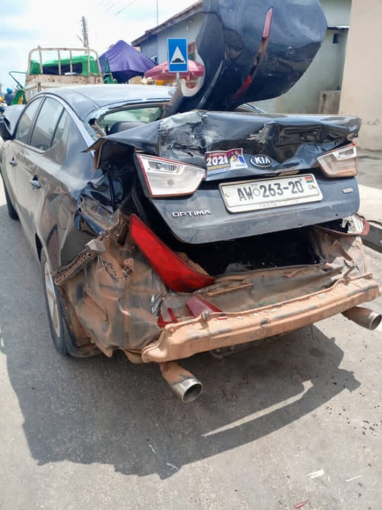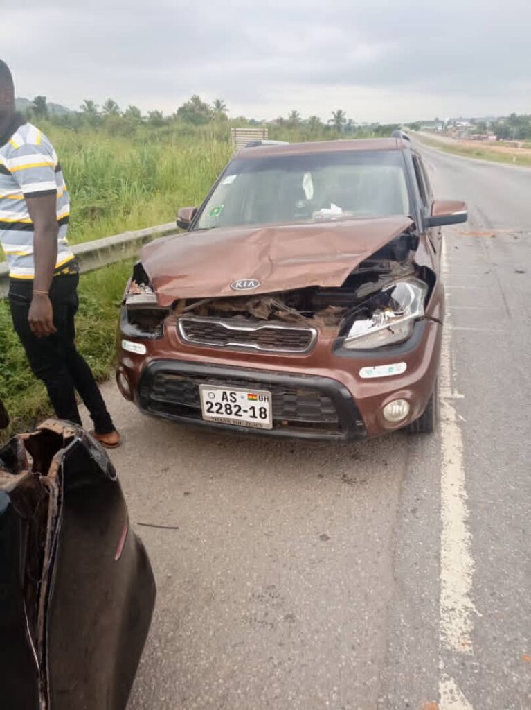 Together with his wife in a KIA Optima with registration number AW 263 -20 en route from Suhum to Accra got hit by a a CIMAF trailer also with registration number GN 7174 -20 who reportedly lost control of the pedals.