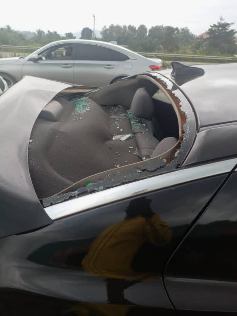 Even as the truck hit No Weapon’s car, another car with registration number 2282 – 18 following the truck also miscalculated and eventually hit the truck.