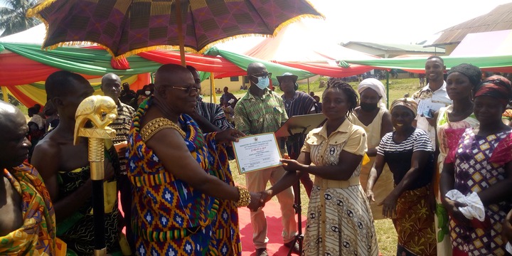 In all, 9 farmers were awarded with Mr Eric Donaldson Ohene winning the overall best farmer in the municipality. His take home were 1 tricycle, 3 cutlasses, 1 Knapsack sprayer, half piece cloth, 1 Wellington boot, Vet Drugs and a certificate.