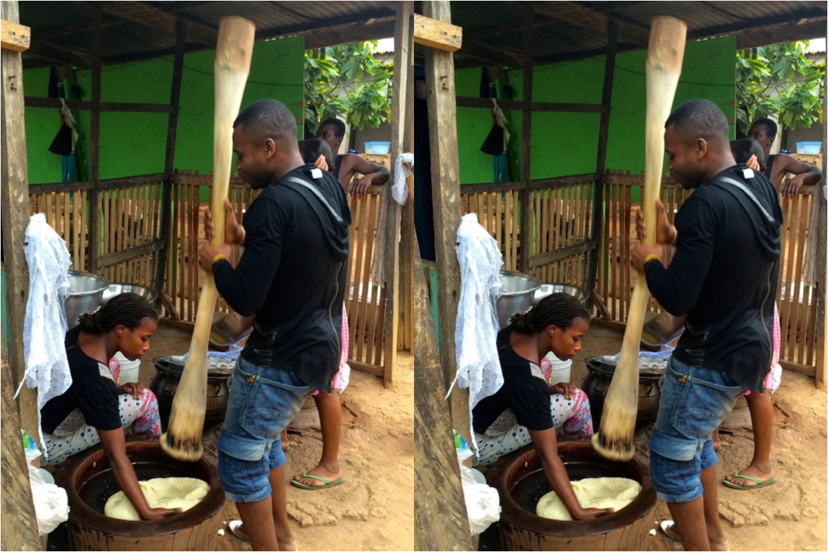 Is he broke? Photo of Kumawood actor pounding fufu in chop alarms Ghanaians