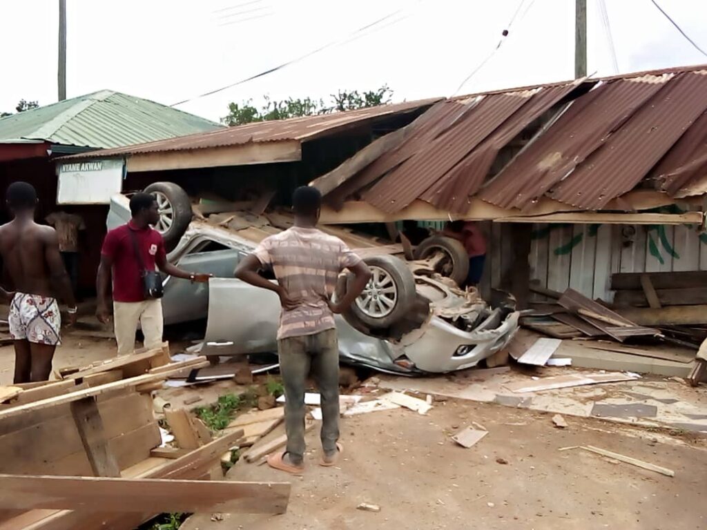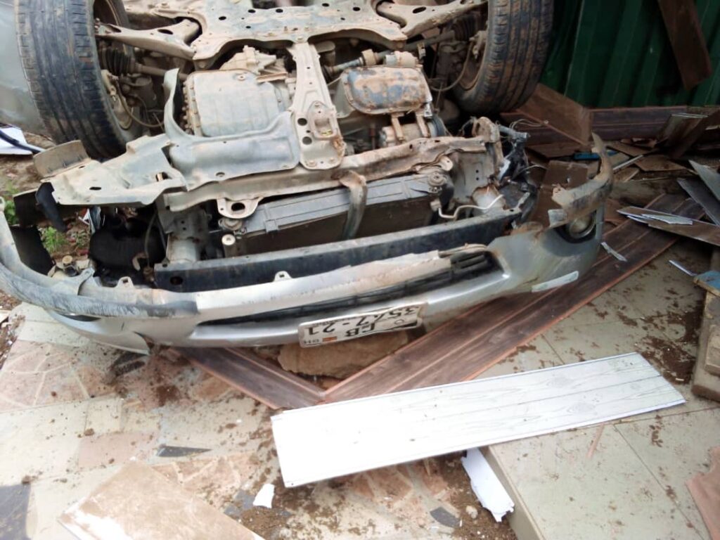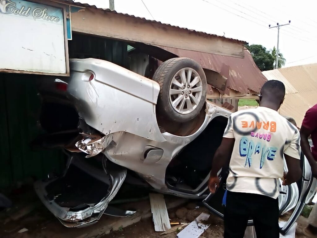 A speeding Toyota Corolla with registration number GB3547-21 en route from Koforidua to Old Tafo involves in accident at Akyem Tafo, new road.