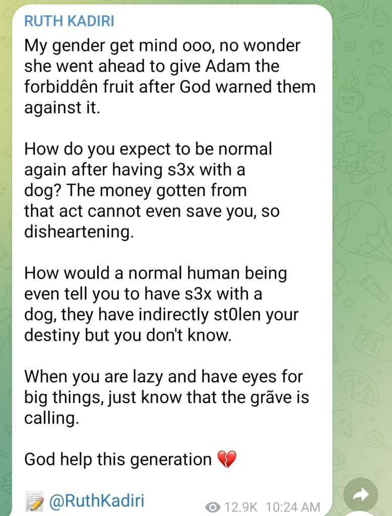 An outspoken and we’ll endowed Nollywood Actress, Ruth Kadiri has waded into the hulabalous on some women especially, the so called celebrities doing it with dogs.