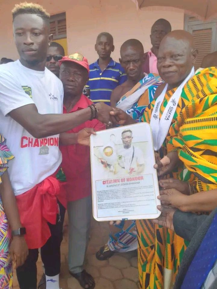Residents Of Brekum And Jinijini Welcome Kotoko’s Stephen Amankwano In A Grand Style For Winning GPL