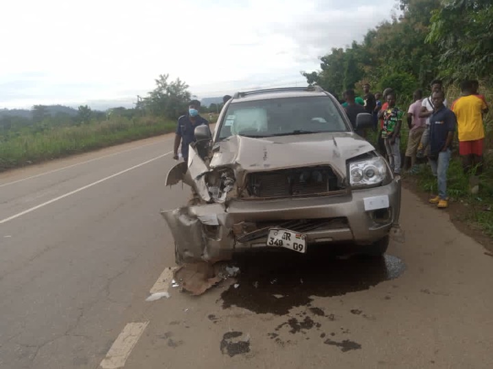 The accident involved a Toyota 4Runner with registration number GR 348 – 09 en route from Kumasi to Accra and a motor cycle also with registration number M – 21 – GW 3204 from Nsuapemso to Osino.