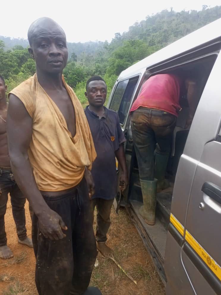 The forestry guards surrounded the nine people who were illegally mining at around 5 pm on Tuesday, February 7, 2023, after receiving intelligence about their illegal activities.