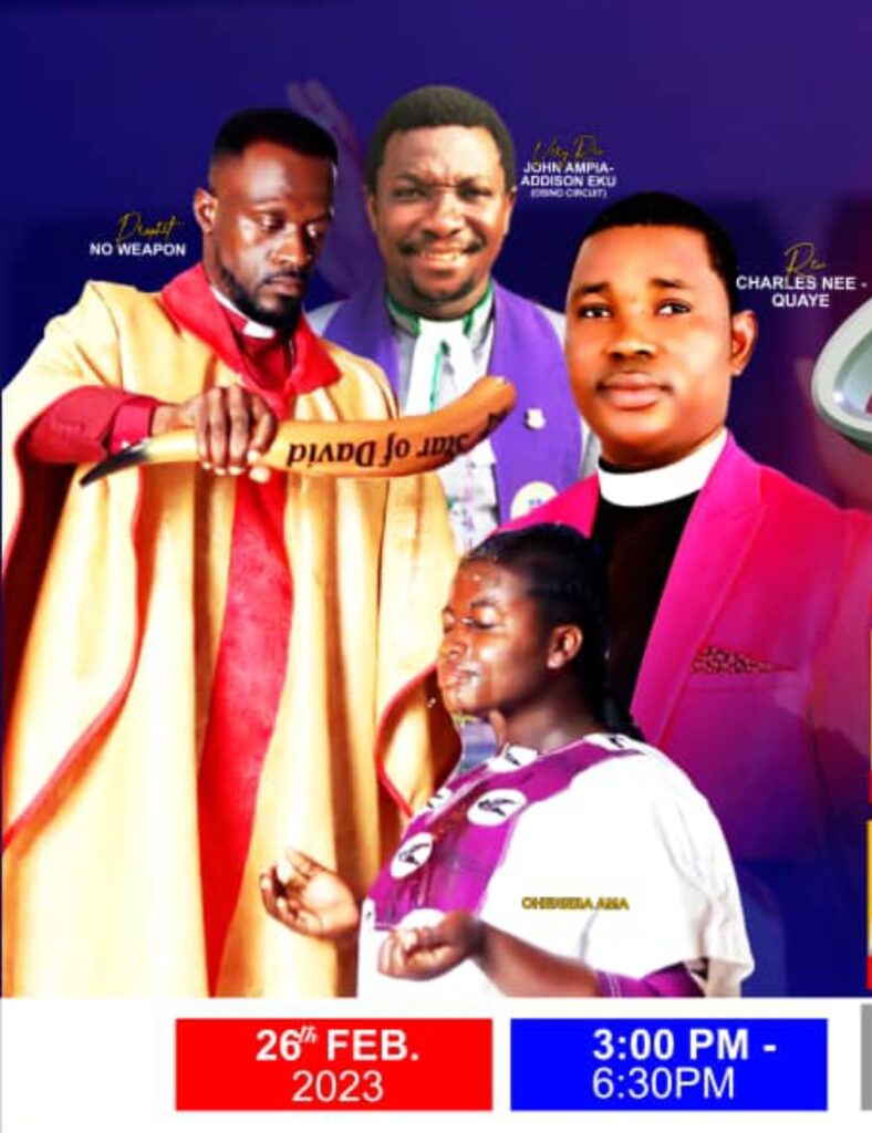 Powerful and inspirational pastors and prophets are said to grace the occasion and also include but not limited to; Apostle Ernest Agyei Boateng popularly known as Prophet No Weapon (founder and leader of No Weapon Prayer and Prophetic Ministry), Rev Charles Neequaye ( Minister in charge of Trinity Presby Church), Very Rev. John Aampia – Addison Eku (Superintendent Minister of the Methodist church, Osino circuit) and a host of them.