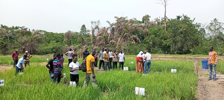 To enhance resource use efficiency and improve yields, scientists from the Crops Research Institute and the Plant Genetics Resources Research Institute (PGRRI) of the CSIR demonstrated to rice growers in the Eastern Region, how rice (Oryza sativa) can thrive with less water on Friday April 14 2023 at Nsuapemso in the Fanteakwa South District.