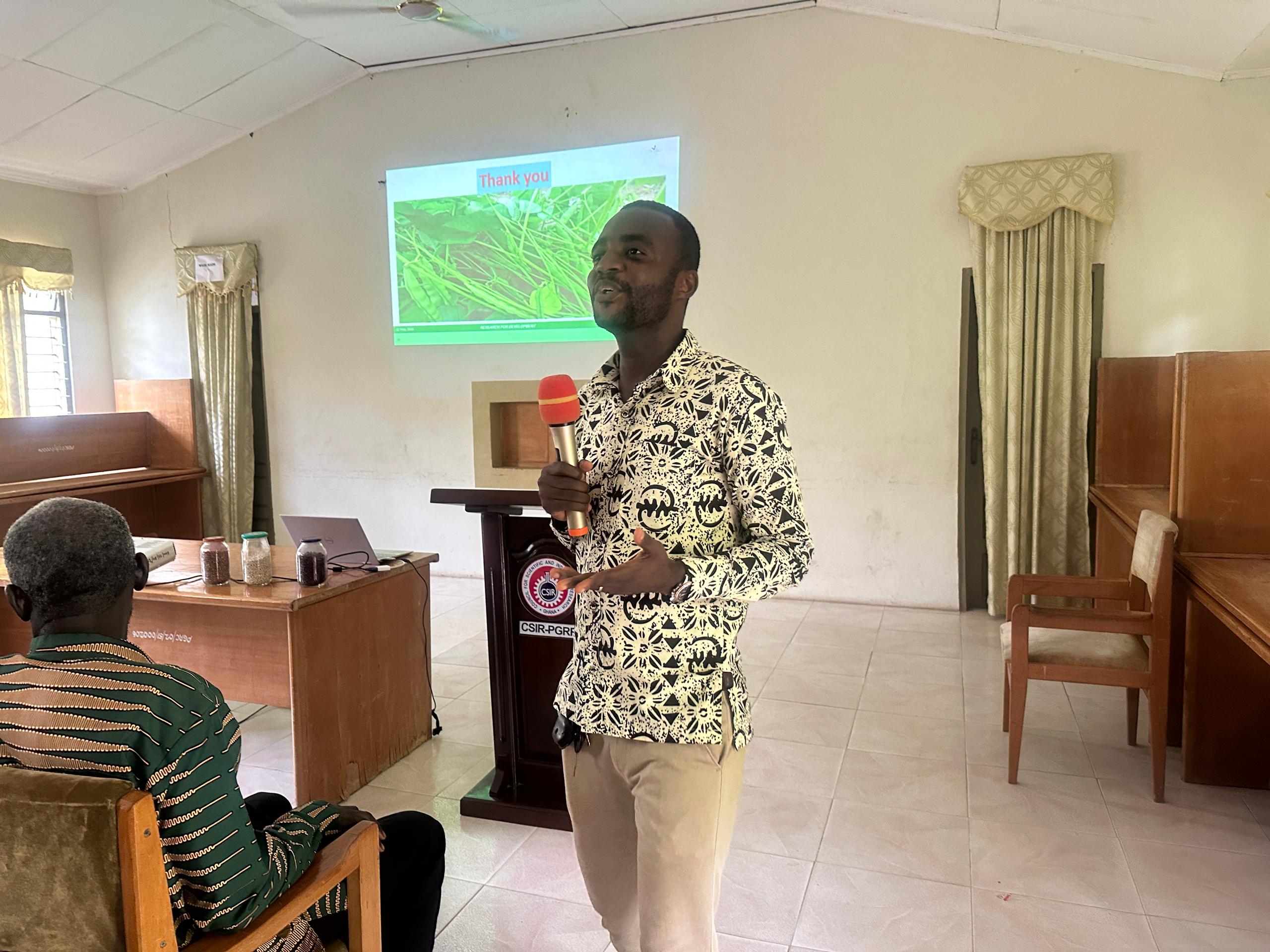 Dr. Adjei continue by saying that after a terror Research and trial they realized that common bean can be cultivated in the eastern region due its humidity condition so there was the need to introduce it to the farmer first before demonstrating it on the field with the farmers since it’s a new seed.