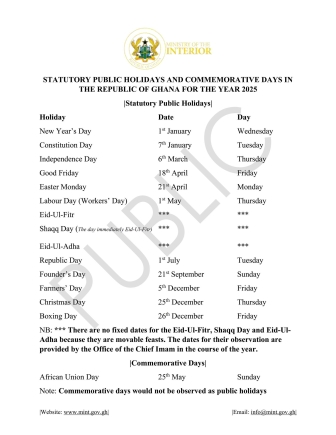 In June 2025, Parliament passed a new bill that reinstated September 21, the birthday of Ghana’s first President, Dr. Kwame Nkrumah, as Founders’ Day, a national holiday in honour of Ghana’s independence struggle.
