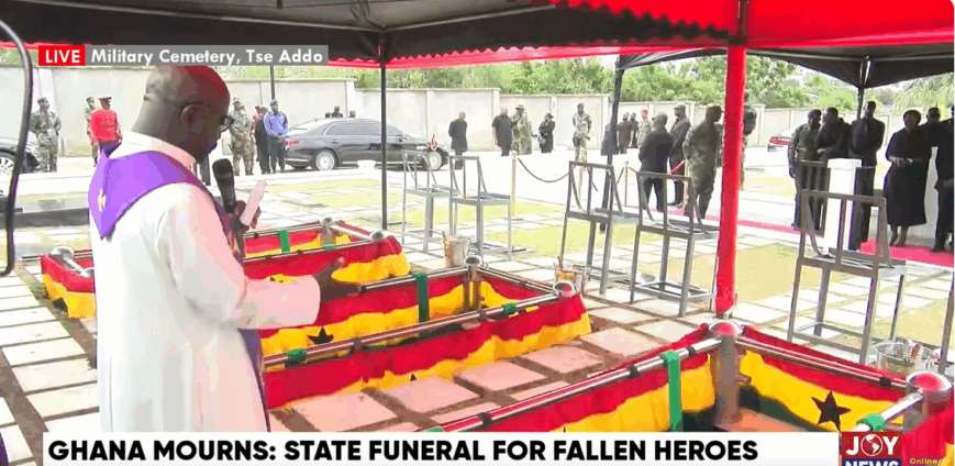 The flag-draped caskets of the six victims, including Defence Minister Dr. Edward Omane Boamah and five others, were lowered into their graves to the mournful strains of the Last Post.
