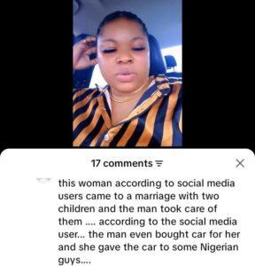According to online commentators, the relationship between the TikToker and her alleged partner deteriorated following accusations of mistrust and disagreements over support and responsibility. Some claim that the situation intensified after a vehicle reportedly provided by the partner was reclaimed, triggering further disputes.