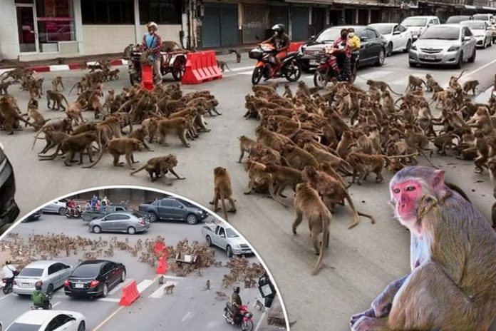 Monkey Gangs Square Up In Front Of drivers Amid Covid-19 Food Shortage In Thailand
