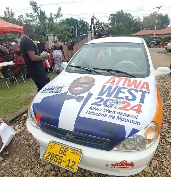 NPP Parliamentary Race: Atiwa West Heats Up! Over Eighty Taxi Drivers Adorn Their Cars with Posters Of Samuel Awuah Dankwa