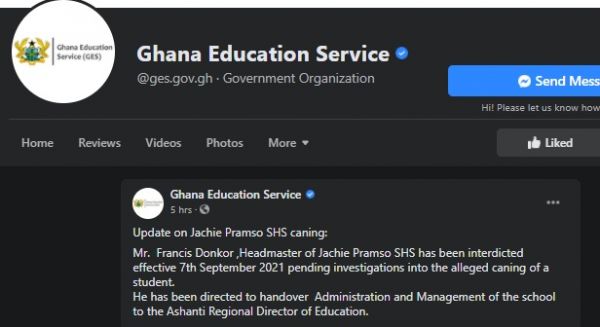 September 9, 20210GES Interdicts Headmaster Who Brutalised Student