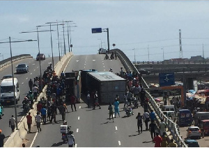 Cargo Truck Falls On Its Side On Kwame Nkrumah Interchange